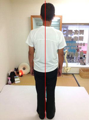 立位での体のゆがみ(痛みが出ている足をかばい、体が無意識に傾く)